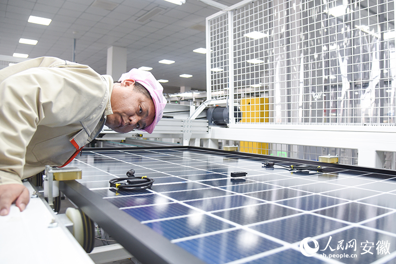 来到汉伏能源(安徽)有限公司的临蓐车间,除了合头枢纽的质检工位外,险些看不到工人的身影,自愿化是这里的独一合头词,正在这座自愿化水准高达95%的工场里,每16秒就有一片光伏组件走下临蓐线。